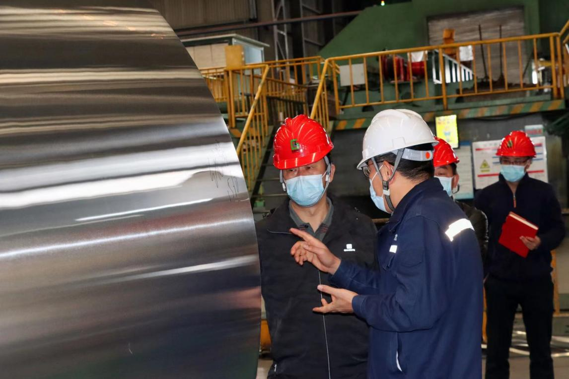 調(diào)研組一行深入貴州中鋁冷軋制造部的生產(chǎn)一線了解企業(yè)主要產(chǎn)品、技術(shù)工藝等情況。隨后,黃獻喜一行與貴州中鋁企業(yè)領(lǐng)導班子成員進行交談,聽取了貴州中鋁對生產(chǎn)經(jīng)營情況、外貿(mào)進出口情況、物流情況等相關(guān)匯報,調(diào)研組一行對貴州中鋁的生產(chǎn)經(jīng)營模式及取得的成績給予了肯定。同時對公司在經(jīng)營過程中存在的問題及困難有了初步了解。